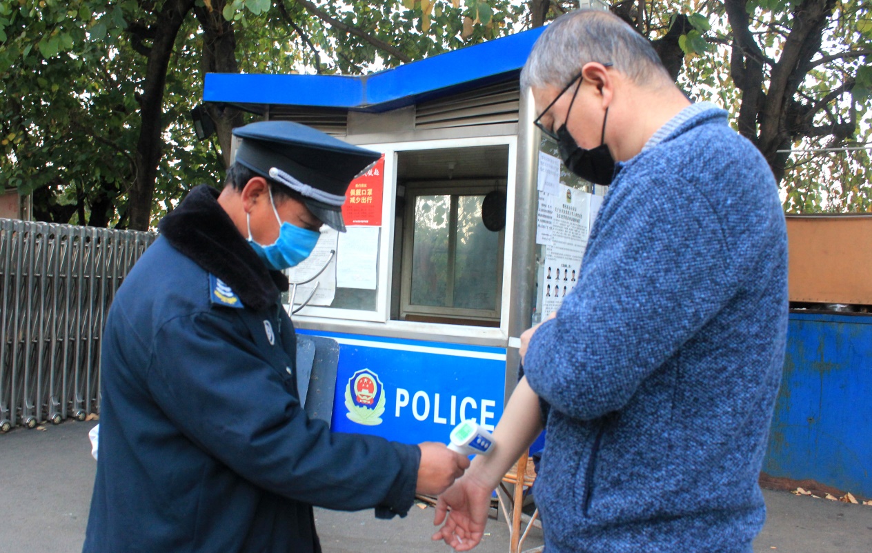 在学院大门口,经过培训后的防疫人员在学院保卫科的配合下,对进出校区的人员及车辆进行逐一登记,并检测体温,检查人员根据检查结果确定进出人员身体体温正常、身体健康,然后给予放行。每到上班高峰期,人员进出相对集中,但大家并无怨言,自觉排队,同检查人员高度配合,有序检测,有序登记。