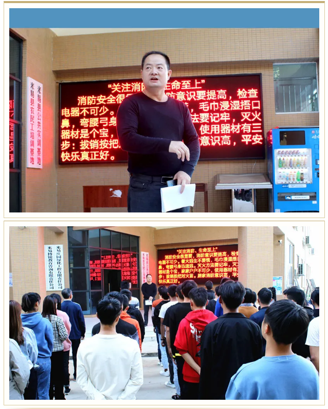 演练前,后勤保卫处副处长倪继成向师生们讲解了消防演练的重大意义及发生火灾的自救知识,要求大家要熟悉和掌握逃生路线,当发生火灾时,要有序、迅速、安全地撤离疏散,最大限度地减轻火灾事故造成的人身伤害和财产损失,确保生命安全。通过周边发生的一些火灾案例,讲解了如何有效应对和选择最有效的逃生方法。