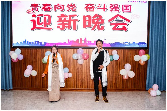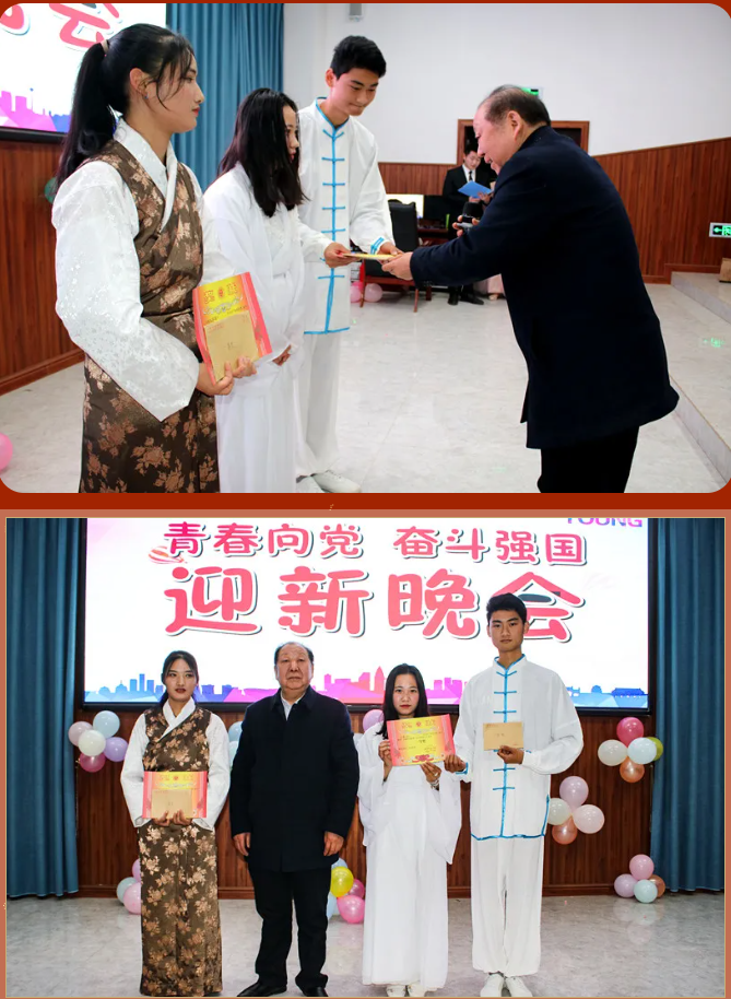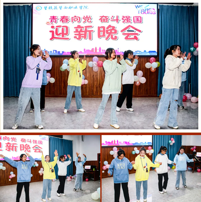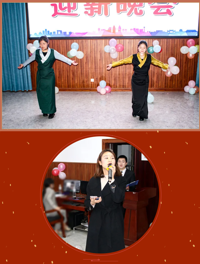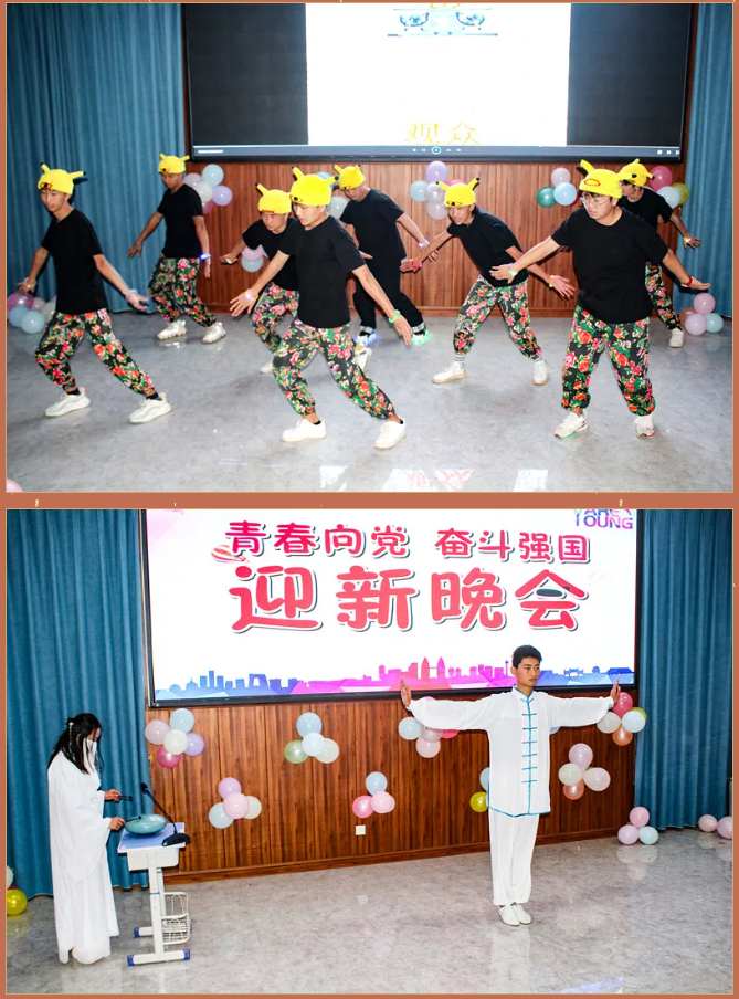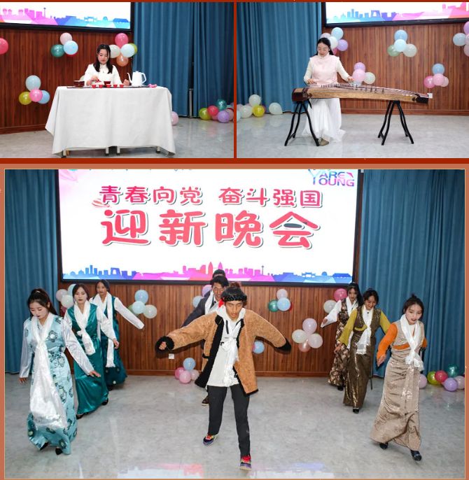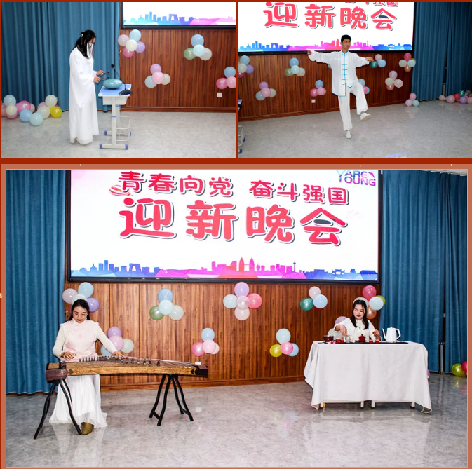 清风拂柳,温阳普照,激情澎湃,盛世欢腾。舞蹈《毛主席语录》为晚会拉开序幕,紧接着朗诵《觉醒年代》让大家感受一百年前中国的先进分子和一群热血青年演绎出的一段追求真理、燃烧理想的澎湃岁月。在喜迎中国共产党成立100周年之际,大合唱《没有共产党就没有新中国》表达出师生强烈的爱党爱国之情。藏族歌曲《邦锦梅朵》为大家送来了新春祝福,传递着对美好生活不懈追求。《串烧舞蹈》用绚丽多彩的舞姿舞动属于大学生们的青春旋律,点燃大家的激情,放飞梦想。《三星太极》展示了中华武术悠久的历史,源远流长的文化底蕴。古筝《高山流水》与茶艺完美的结合,在品茶中享受优美的旋律,感受中华文化的博大精深,让人感到心境开阔,轻松愉悦。歌曲《因为爱情》让大家再次感受到真挚的友谊来之不易,要珍惜美好的情感,不留遗憾。朗诵《跨越百年的承诺》再现南湖红船的胜利启航及在中国共产党的领导下,一代又一代的中华儿女为国家的富强努力拼搏,表达出对祖国的浓浓的深情厚意。彝族歌曲《祖先》让大家一起追寻祖先的智慧,聆听先辈的教诲。舞蹈《最美祝福》展现青春跳动的旋律,点亮青春的色彩。在节目最后,由刘华老师为大家带来的激情演唱,师生热情高涨,掌声、叫好声让晚会现场变成沸腾的海洋,晚会在高潮中完美落幕。