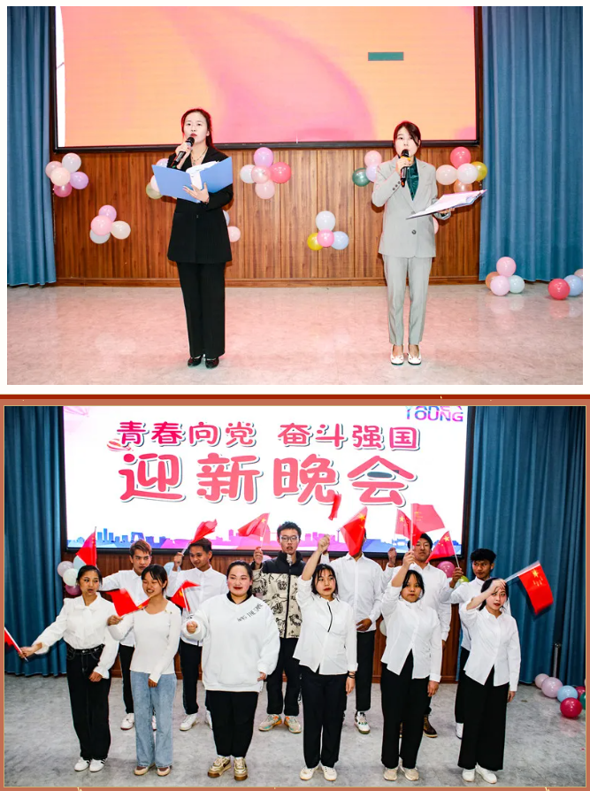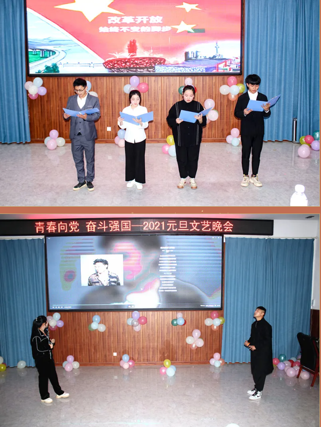 2021年12月30日晚,球探体育平台中国登陆入口2022年“青春向党 奋斗强国”迎新晚会在二实训楼阶梯教室精彩上演。院长刘国钦教授、执行院长赵海林、副院长李玉德、组织人事处处长曾祥明、教务处处长邹吉辉参加晚会并担任评分嘉宾,各系部处室相关领导及教师、学生欢聚一堂,共同欣赏师生们带来的视听觉盛宴。