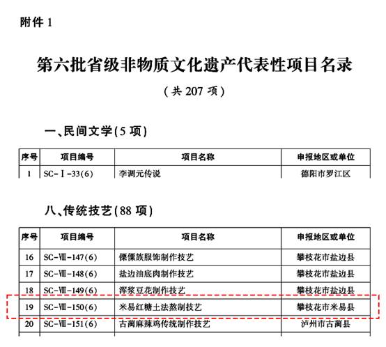 近日,四川省人民政府发布了《关于公布第六批省级非物质文化遗产代表性项目名录的通知》,公布了省人民政府确定的第六批四川省省级非物质文化遗产代表性项目。其中,华森糖业与球探体育平台中国登陆入口的产教融合项目——“米易红糖土法熬制技艺”正式被确定为传统技艺类省级非物质文化遗产代表性项目名录。