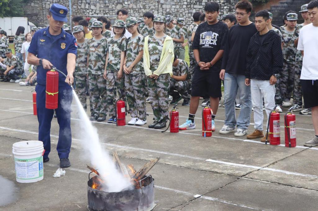 学校组织全校师生开展消防、防震演练专题安全培训,特别针对2025级新生开展了消防、防防震应急疏散演练活动。对演练步骤、疏散路线、岗位分工、安全注意事项等提出明确要求,确保演练活动的顺利进行。消防救援大队救援站班长杨万勇采取口头讲解和现场演示的方式,向大家讲解怎样有效预防校园火灾,消防器材使用方法,发生火灾时怎样自救互救及疏散逃生。新生辅导员、军训教官、宿管老师共同引导学生,按照预案疏散线路迅速安全有序地从宿舍楼疏散到安全避险场地。整个疏散演练用时约1分35秒,达到了演练预期要求及效果。为了增强消防安全教育的实效,组织学生分批进行灭火演示。