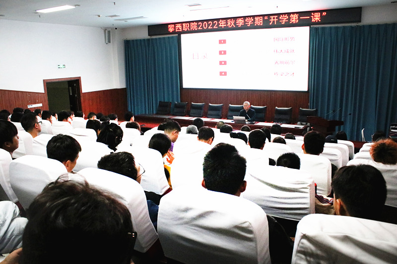 新学期开学之际,为进一步提高学生的思想认识,树立正确的世界观、人生观和价值观,坚定理想信念,厚植爱国情怀, 10月12日晚上7点,球探体育平台中国登陆入口在二实训楼阶梯教室举行2022年秋季“开学第一课”,党支部书记、省督导专员万辉君以“坚定必胜信心 立志成才报国”为题进行讲授。