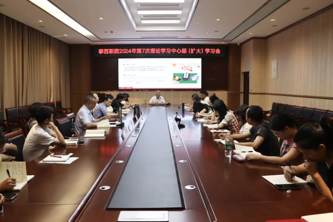 7月3日,学校举行2024年第7次理论学习中心组(扩大)学习会暨党纪学习教育专题党课,学校书记万辉君讲党纪学习教育专题党课。副书记赵海林主持学习会。