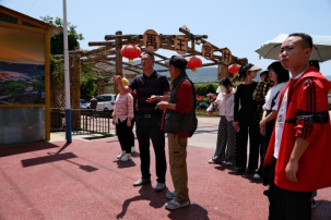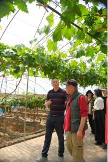 一行人相继考察参观了葡萄种植园、别墅群工地、文化墙绘、夕阳红广场等。在过程中李波书记亲自为大家导游讲解,学院教师不但调研了该村镇的环境设施、运作流程,还了解村镇生产组织方式、实践操作流程、岗位规范、管理制度等。在村镇建设与管理上,和相关专业的教师进行讨论与研究,并询问其他教师一些专业性问题,展开简短交流。