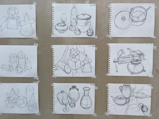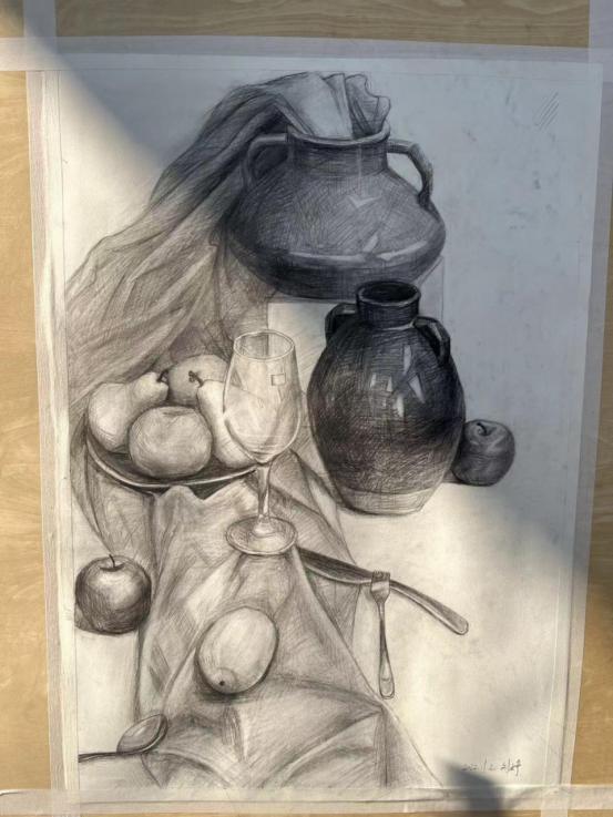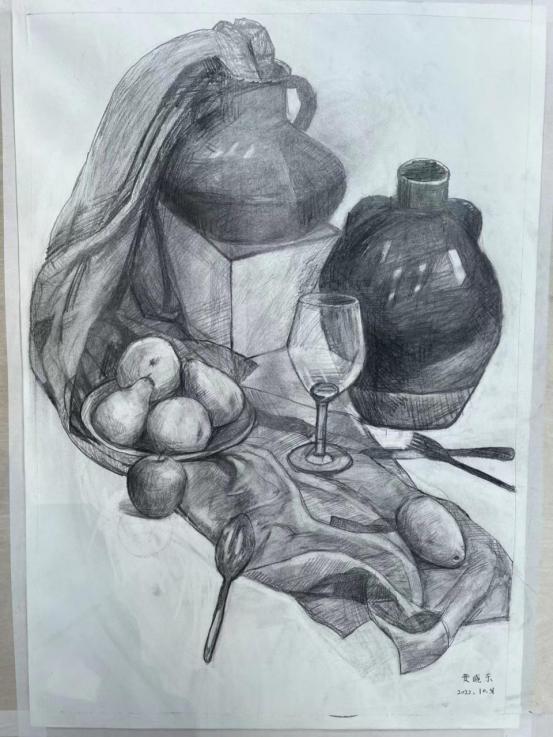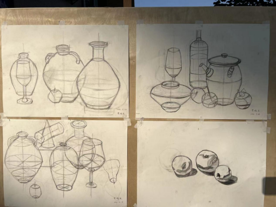本次《设计素描》课程汇报展展出作品共计33件,从展出的作品中可以看出学生们的眼、手、脑、三位一体的协作与配合能力以及操作能力、观察能力、思辨能力都有较与开课前有一个质的飞越!在面对陶罐、灯具、水果等静物写生慢慢的能够敏锐地把握各种的造型因素:轮廓、比例、结构、空间、明暗、量感、肌理等相互的关系,以及形体之间的正负、凹凸、离合、内外、虚实等矛盾关系。此次展出是对教师教学能力的一个肯定,更是对学生们的绘画功底和表达思维激励。在此也希望学生们在今后的其余课程的学习中有更加出色的表现!