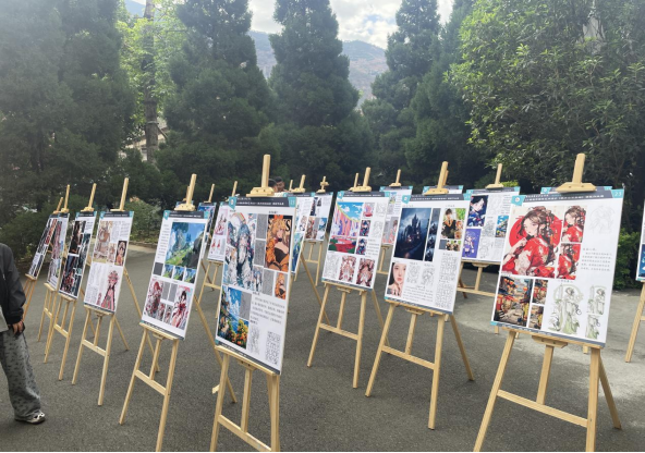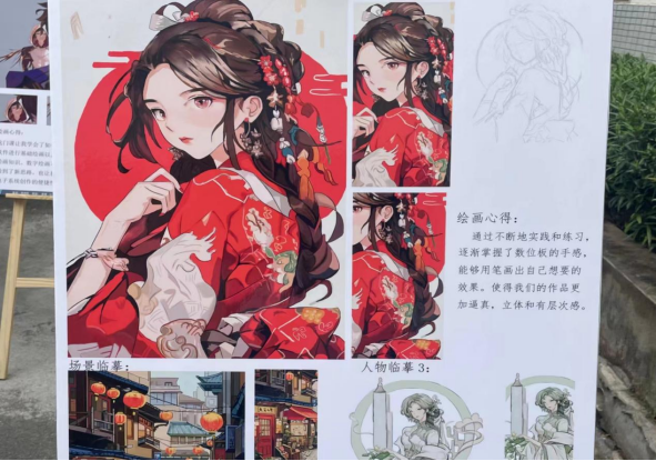 大家用自己的数位板、笔和线条与栩栩如生的色彩相结合完美刻画出了自己作品独特的视角精湛的技艺和深刻的内涵。充分展现了数字媒体艺术设计的魅力与创意。展览现场吸引了众多师生和校外嘉宾的驻足观赏,大家纷纷为这些充满创意的作品点赞。在展览现场,一幅幅精美的设计作品映入眼帘,让人目不暇接。这些作品既有传统艺术元素的融合,也有现代科技手段的巧妙运用,充分展示了数字媒体艺术设计的多样性和创新性。