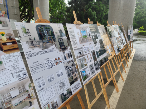 5月27日上午,2023级环境艺术设计全体学生在教学楼一楼过厅进行了住宅空间设计展览。吸引了不少同学驻足观看。