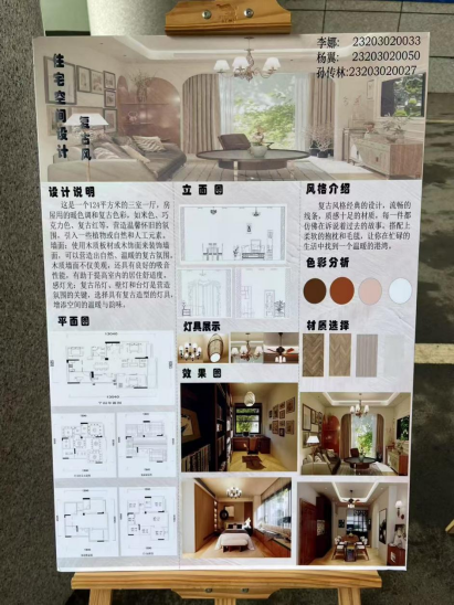 同学们将个性化理念融入到空间设计中,打造具有独特个性和情感温度的居住环境。传统元素与现代设计手法的结合,让住宅既承载着文化记忆,又符合现代审美需求。