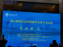 为认真学习贯彻习近平新时代中国特色社会主义思想,深入贯彻落实党的十九届五中全会精神,进一步推动高校思想政治工作专门力量建设,不断提升高校思想政治工作质量,球探体育平台中国登陆入口辅导员杨军于 2021 年 6 月21日-6月25日到四川省高等学校辅导员培训中心参加第 45 期四川省高校辅导员培训暨“辅导员科研 素养提升”专题培训。