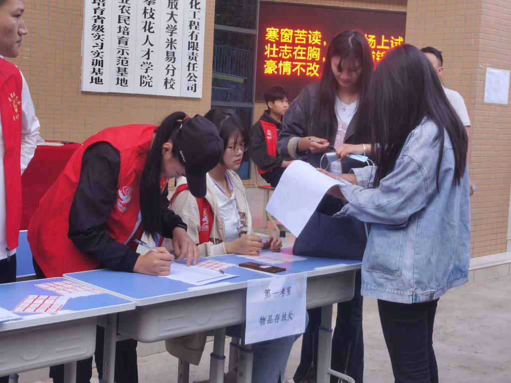 随着考生的陆续到来,志愿者们分工合作,以优质的贴心服务,热情接待每一位考生,信息核对、物品寄存、热水服务、引导考生有序入场,为考生提供“一站式”服务,向每一位考生传递着关怀和温暖,消除了考生初来乍到的陌生感,缓解了大家考前的紧张情绪。