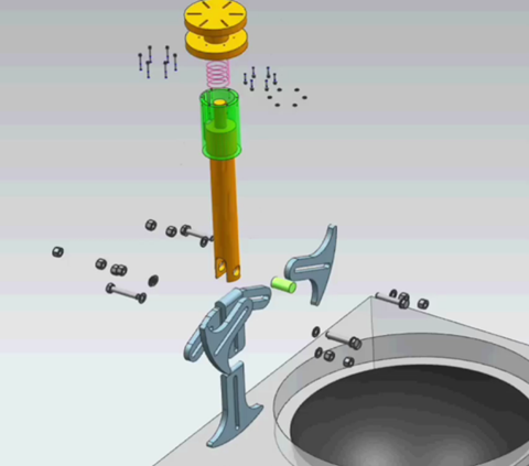 通过三维设计,3D打印,编程技术,对产品进行参数化设计,打印模型进行可行性分析,在工业机器人仿真软件中编写程序,可对搅拌进行动态仿真。结构简单,可以适用不同型号的工业机器人,通过程序调整搅拌速度,大大避免以往的因深度定位误差造成的铁锅破损。价格低廉,生产效率高,大大提高操作安全性,降低作业伤害率。