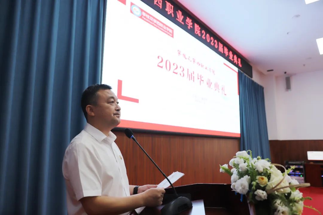 7月8日上午,球探体育平台中国登陆入口2023届学生毕业典礼在学校隆重举行。米易华森糖业有限责任公司董事长、球探体育平台中国登陆入口学院理事长张家华,学院院长刘国钦,省督导专员、学院书记万辉君,学院副书记、执行院长赵海林,学院副院长潘吉平,学院副院长李玉德出席典礼。学院中层干部(助理),全体教师和毕业生与在校生代表参加典礼。典礼由学院副院长潘吉平主持。