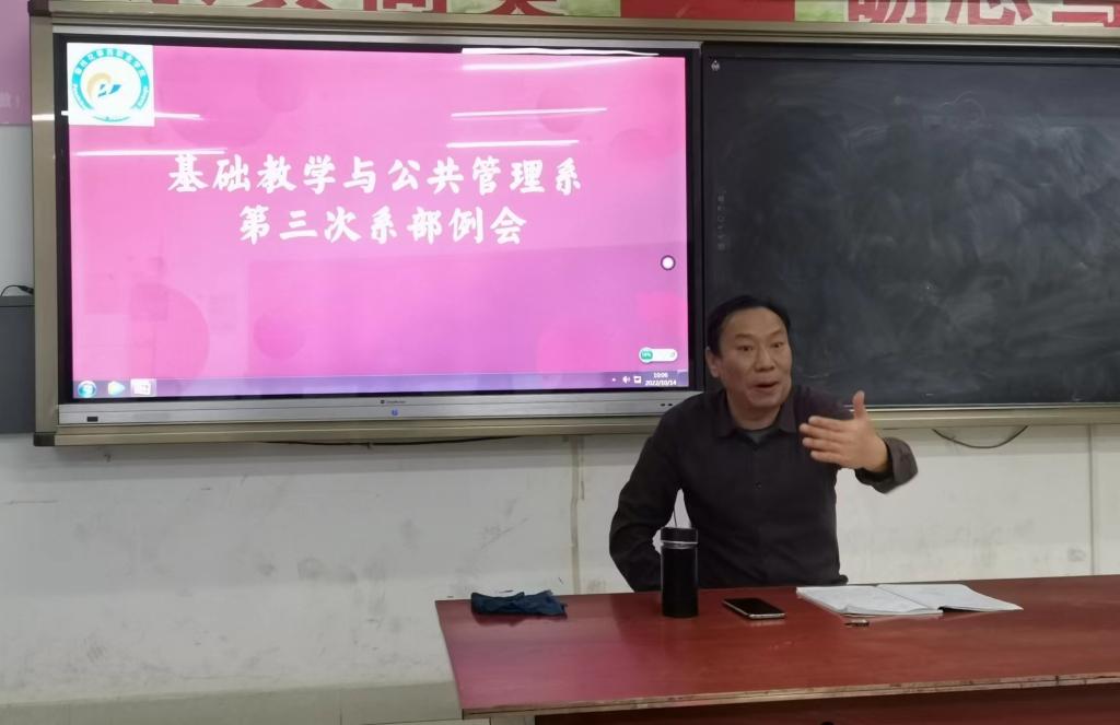 为了加强系部管理,建立系部管理架构,基础教学与公共管理系于2022年10月14日10时,在教学楼210召开系部例会。本次例会基础系全体教师参加,系主任伍亚林主持。