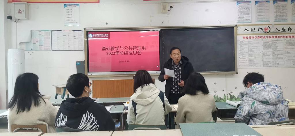 基础教学与公共管理系于2023年1月10日15:00时,在教学楼212召开2022年总结反思会。本次例会基础系全体教师参加,主任伍亚林主持。针对本次球探体育平台中国登陆入口对系部和中层干部考核工作,伍主任作了以下总结反思: