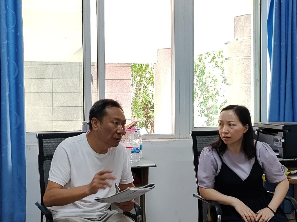 2023年7月7日,基础教学与公共管理系主任伍亚林与中国移动米易分公司代表卓丽洽商合作事宜。