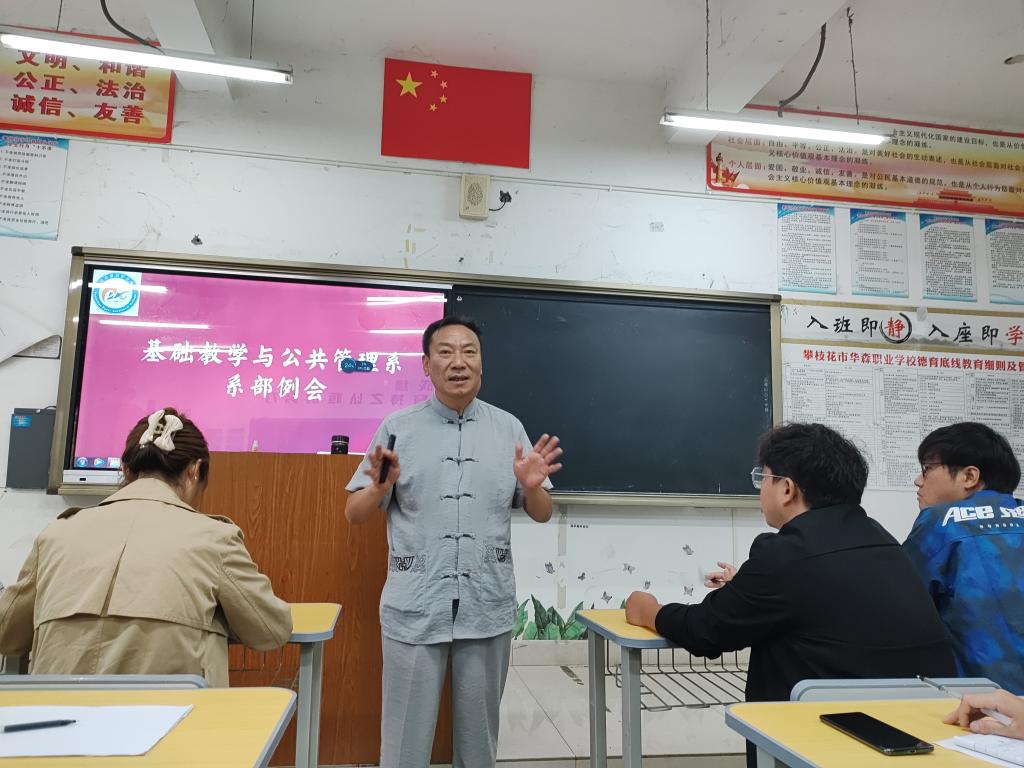 为了让新教师迅速进入角色,适应岗位要求。基础教学与公共管理系于2023年10月12日,在教学楼212召开系部例会。本次例会基础系全体教师参加,系主任伍亚林主持。