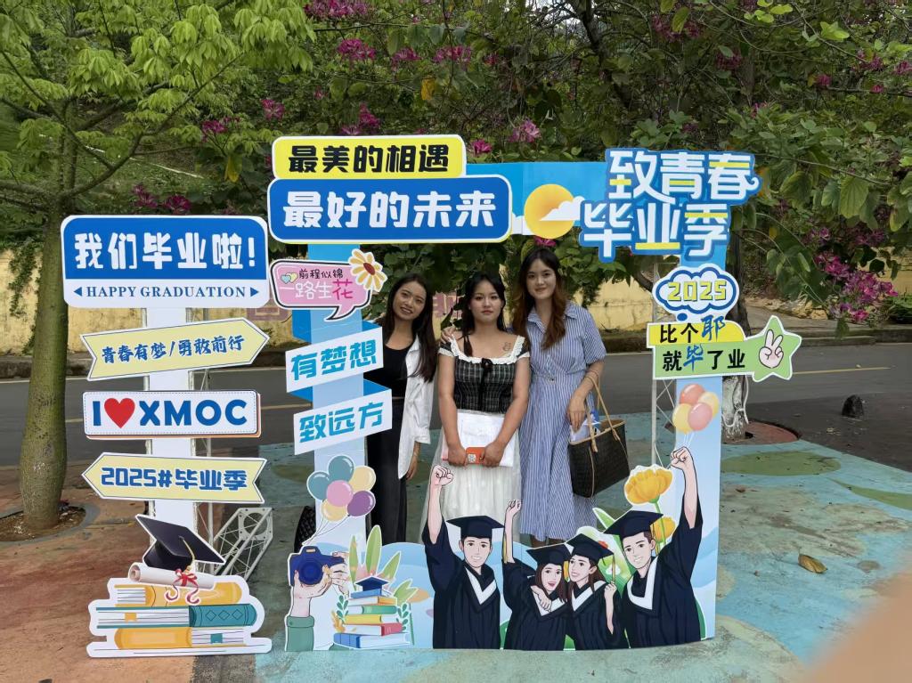 校园里,创意毕业打卡点成为毕业生们的“青春留念地”。“毕业证书”造型展板,写满对毕业生的祝福;“最美的相遇,最好的未来”主题打卡区,汇聚“我们毕业啦”“致青春毕业季”等标语,同学和老师们在此定格美好,用笑容纪念校园岁月,让青春身影与校园风景、祝福话语相融。