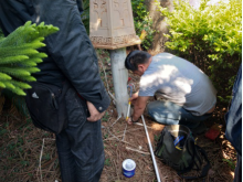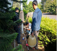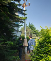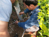 后勤维修人员对进水线路进行重新衔接并挖线路埋藏点,最后修缮了因大风掉落的路灯灯罩