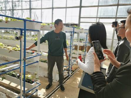 现代农业系教师在公司负责人白延全的带领下观摩了智能化温室大棚、商品化育苗大棚、无土栽培、智能控制管理平台、水肥一体浇灌等设施设备,介绍了新型无土栽培技术、生物授粉技术、番茄等各类农产品培育技术等,展现了百家农业的较高科技水平及其紧扣市场需求的良性发展形势。