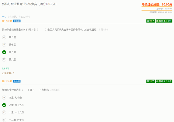经过一段时间的准备,现代农业系针对本系在校学生开展了“新职业教育法”知识竞赛,要求学生在对分易教学平台上30分钟内完成35道竞赛题,这次活动得到同学们的积极响应。最终,2021级中医养生保健专业的马晓红、海来洛破分获一、二等奖;2020级中医养生保健专业的郭德秀、2021级中医养生保健专业黄俊皓、林子雅获得三等奖。