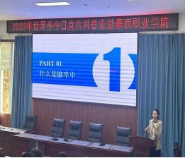 为响应国家卫生健康委办公厅印发的《国家卫生健康委办公厅关于开展 2023年世界卒中日主题宣传活动的通知》 (国卫办医急函[2023]372号)文件,关爱学生健康,提高学生健康意识,宣传健康理念,米易县中医院派遣医务人员于2023年11月2日到球探体育平台中国登陆入口现代农业系开展健康知识科普讲座。