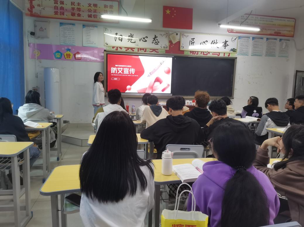 在班会上,团支书为同学播放“防艾宣传”视频,并讲解了关于艾滋病的相关知识。