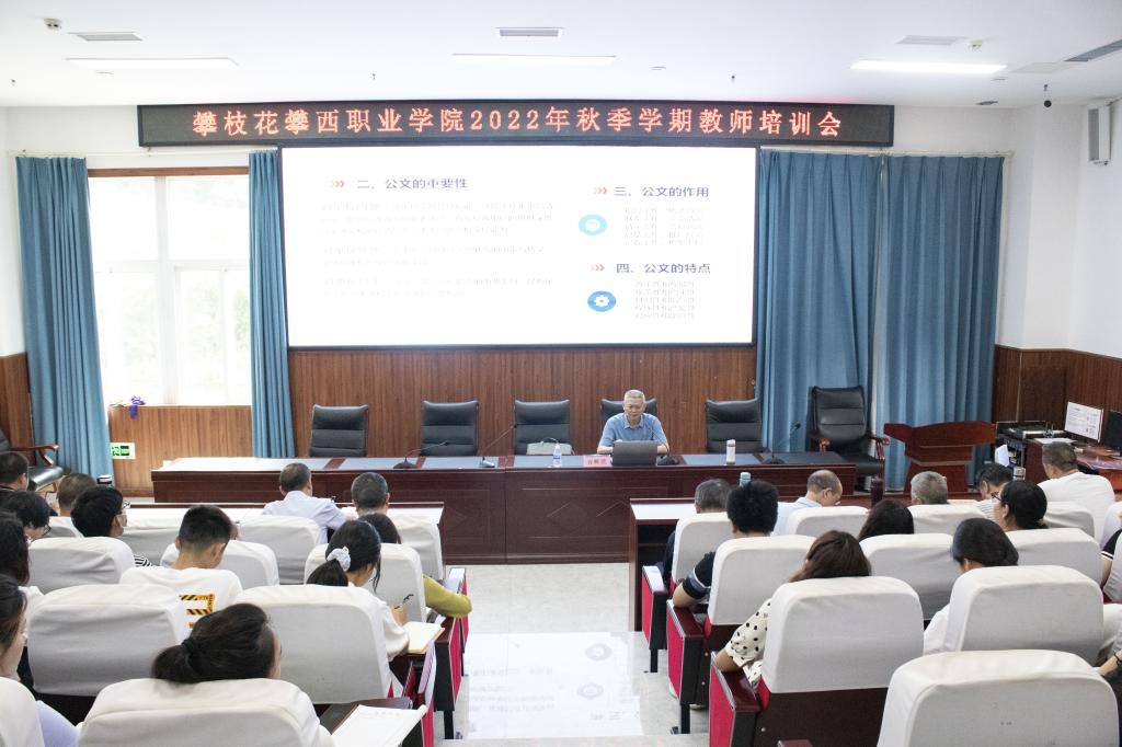 为进一步提升学院干部履职能力,提升教职工公文写作和应用水平,提升学院公文质量和信息报送质量,8月27日下午,在球探体育平台中国登陆入口2022年秋季学期教师培训会上,学院党支部书记、省督导专员万辉君教授举办了“公文写作规范与技巧”专题讲座。