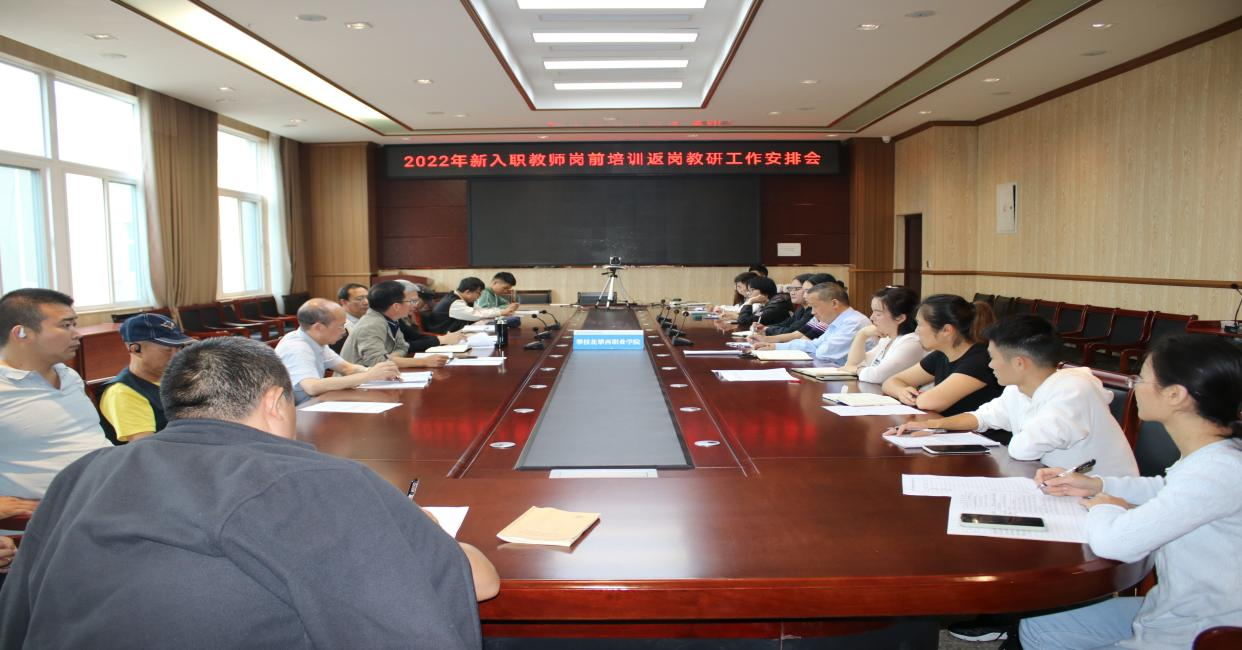 为进一步提升我校新入职教师队伍整体素质,夯实新入职教师教育教学基本技能,9月27日上午,我校在实训楼4楼会议室组织召开2022年新入职教师岗前培训返岗教研工作安排会。学院领导万辉君、李玉德出席会议并讲话,组织人事处、教务处、学生处、宣传纪检监察处、各系负责人、2022年参加岗培的教师参加会议。会议由组织人事处处长曾祥明主持。