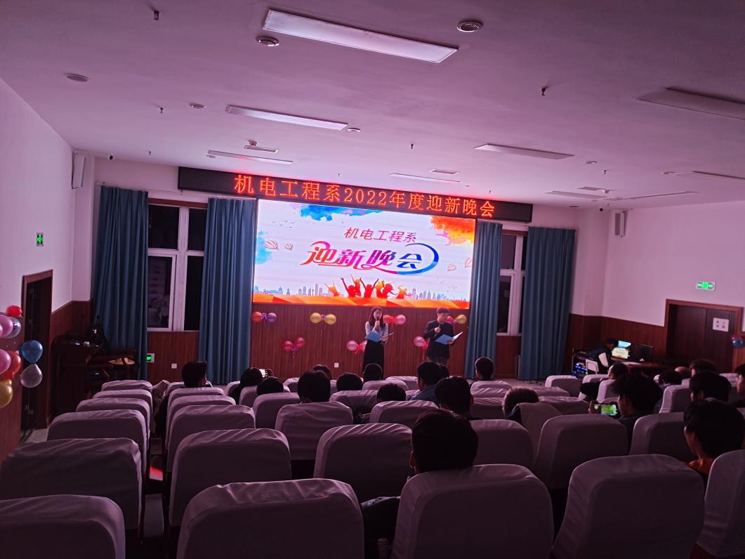 流光溢彩迎新夜,心心连新齐飞扬。为丰富校园文化,活跃学习氛围,展示师生风采,增进师生间的情谊和同学间的友谊,2022年12月14日晚7点,机电工程系2022年迎新晚会在二实训楼阶梯教室拉开帷幕。