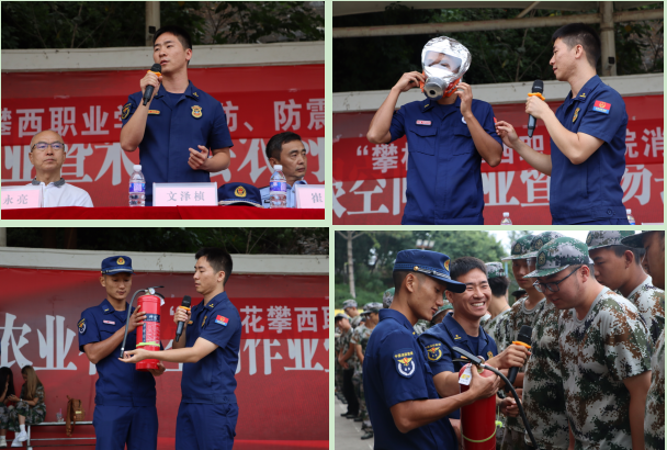 消防救援大队副站长文泽桢重点就消防安全基本知识,如正确使用消防器材扑灭初期火灾、过滤式防烟面罩的正确使用等情况做了现场讲解示范。同时,为增强大家的灭火实战能力,文泽桢副站长现场指导师生开展灭火演练,使大家掌握了正确的灭火方法与器材使用,增强了我校师生的消防安全意识,提高了个人消防应急能力。