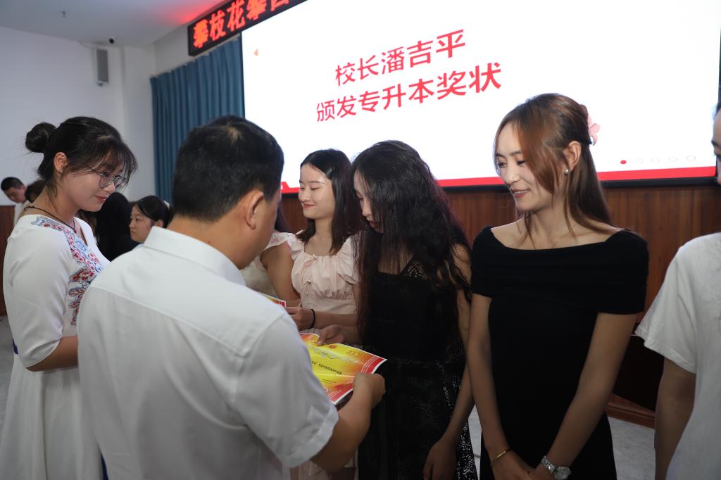 副校长邹永亮宣读《球探体育平台中国登陆入口关于表彰2024届专升本同学的决定》,校长潘吉平为专升本学生颁奖。