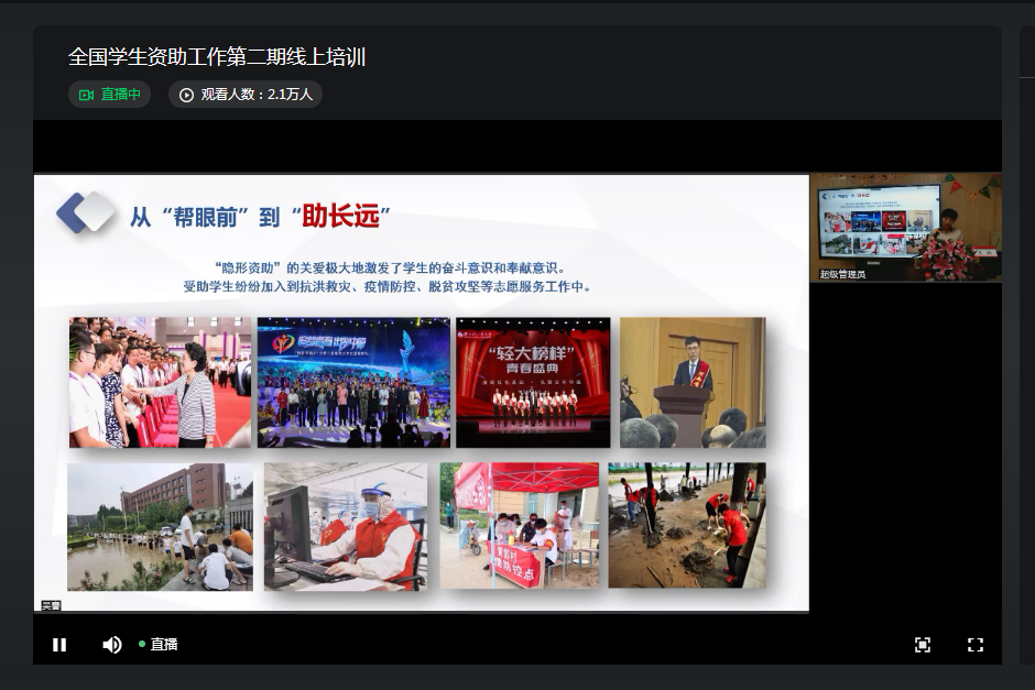此次线上培训,推进了全国学生资助管理信息系统中服兵役教育资助的全面应用,使资助系统操作人员详细了解服兵役教育资助政策及管理信息系统应用操作,提升了资助系统操作人员的业务水平。