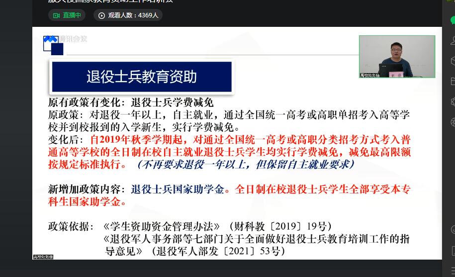 为期半天的培训会议,总结了服兵役教育资助几项重点工作及要求,提出了扎实做好服兵役教育资助信息系统的全面应用与数据质量提升,确保做好服兵役学生享受教育资助。
