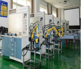 参观前,在两校系主任和老师对各自专业的基本概括、师资力量和实验室建设等情况作了简短的交流之后。机电学院智能制造系的实验实训中心主任杨莉华向我们依次介绍了液压传动与控制实训室、数控设备维修实训室、数控加工车间、模具加工实训室和机加工车间等实训室的设备、开展的实训项目和学科竞赛情况,其中着重介绍了液压传动与控制实训室,该实验室主要承担机械工程及自动化、机电一体化(自动控制)专业方向的液压传动课程的实验与实训。实验室面积约为202m2,拥有YZ型液压实训操作台16台,QCS系列液压教学实验台3台,如果再配置上有关的传感器、二次仪表及测控软件,大多数实验可以实现计算机辅助测试(CAT),还可以用PLC(可编程控制器)实现对液压系统的自动控制,使学生不仅可以掌握PLC基本指令与编程方法,还可以培养学生调试、维护和对机床电气控制系统进行改进;同时还可以拓展学生设计、调试PLC控制系统筹技能水平。