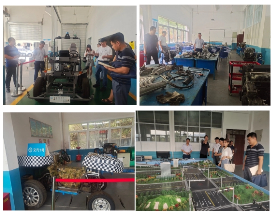 在文主任的带队下,参观了汽车钣喷实训室、汽车发动机构造与维修实训室、汽车整车实训室、汽车底盘实训室、汽车变速器实训室、城市综合交通仿真实训室等。智能制造学院的汽车相关专业注重汽车的智能化发展,我系教师观摩了无人驾驶车辆、学生自制汽车“交汽1号”、城市交通综合仿真电子沙盘、交通信号灯智能教室。在参观学习过程中,文主任为我系教师一一介绍了实训室的设备功能以及该实训室培养学生达到何种技能的目的,伍刚主任也对实训室设备购买渠道、设备使用情况等方面与文主任进行交谈。