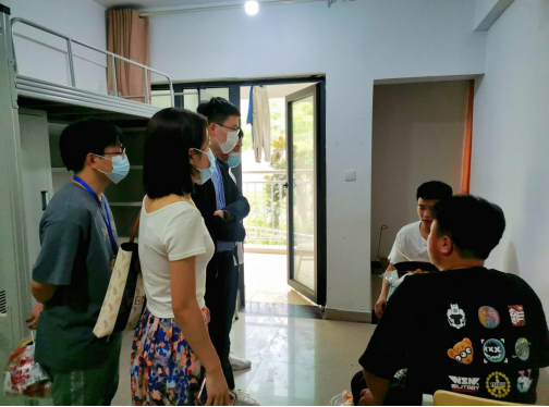 机电工程系全体教师走进学生宿舍看望已经到校报到的新生,为同学们送去水果、月饼等慰问品,在向同学们致以节日问候和美好祝福的同时。师生共聚一堂话家常、聊成长、度佳节,同时,在交流过程中,老师们鼓励新同学调整好心态,保重身体,注意疫情防控,做好大学期间的职业生涯规划,不负青春,不负韶华。在活动结束时,同学们对机电系老师们的贴心慰问与热情鼓励表示感谢。