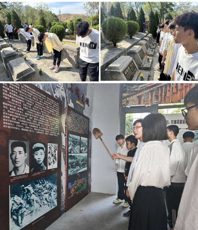 在张妮老师引领下,师生们肃立在烈士纪念碑前,深深鞠躬并向烈士纪念碑献花,表达对英雄们的崇高敬意和无尽的哀思。接着,师生们跟随解说员走进墓地,这些烈士墓仿佛也在静静地讲述着先烈们的故事,激励着同学们铭记历史,珍惜和平,为中华民族的伟大复兴贡献自己的力量。最后,师生们来到纪念馆,参观了展出的历史文献和珍贵图片。这些文献和图片生动地展示了革命历史的艰辛与伟大,让师生们更加直观地感受到先烈们为国家和民族付出的巨大牺牲。