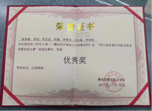 “四川省首届中华职业教育创新创业大赛”校级优秀奖