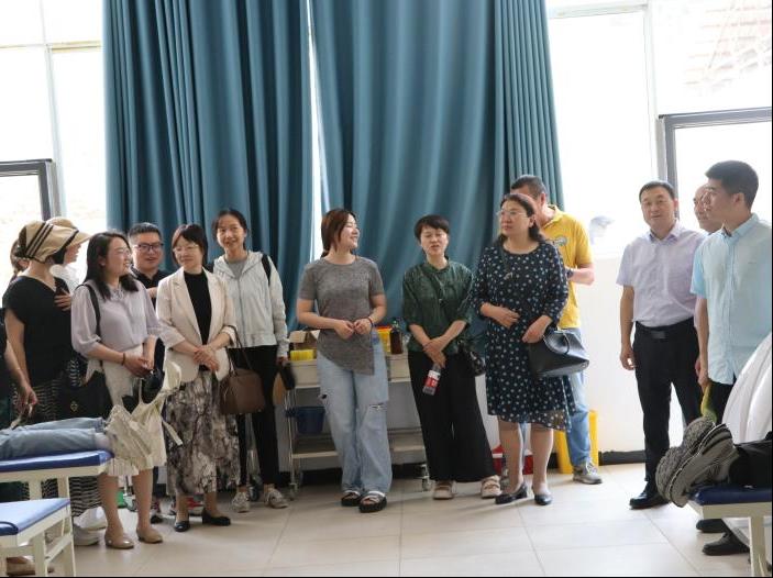 在学院领导的陪同下,专家组一行实地考察了人体形态学实训室、急救室实训室、健康评估实训室、中医养生保健实训、中医针灸推拿实训室、中医药膳实训室、婴幼儿保健实训室等实训教学场地。学院相关负责人详细介绍了实训室的设备功能、教学模式及学生实践成果,展示了健康管理产业学院“理论+实践+产业应用”的一体化培养体系。专家组对中医药膳等特色项目给予了充分肯定,对当地康养产业有着十分重要的意义。中医2023级学生展示了推拿按摩实训课场景,受到了专家组的一致好评。