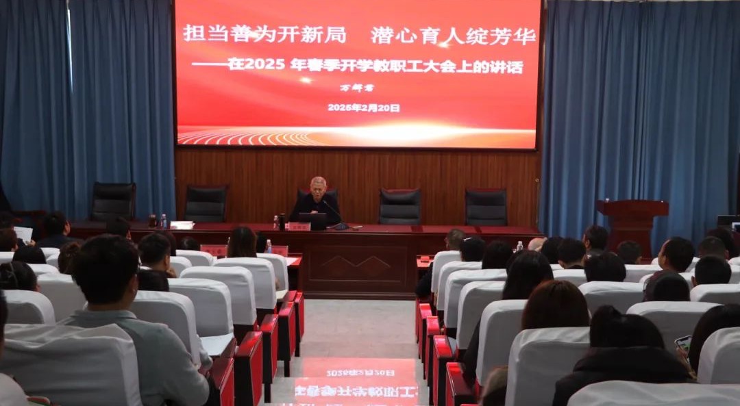 2月20日下午,我校召开2025年第1次理论学习中心组(扩大)学习会,专题学习《教育强国建设规划纲要(2024-2035)》(以下简称《纲要》)。学校书记、省督导专员万辉君教授作辅导报告。学校中心组成员、全体中层干部和教职工参加。会议由副书记、执行校长赵海林主持。
