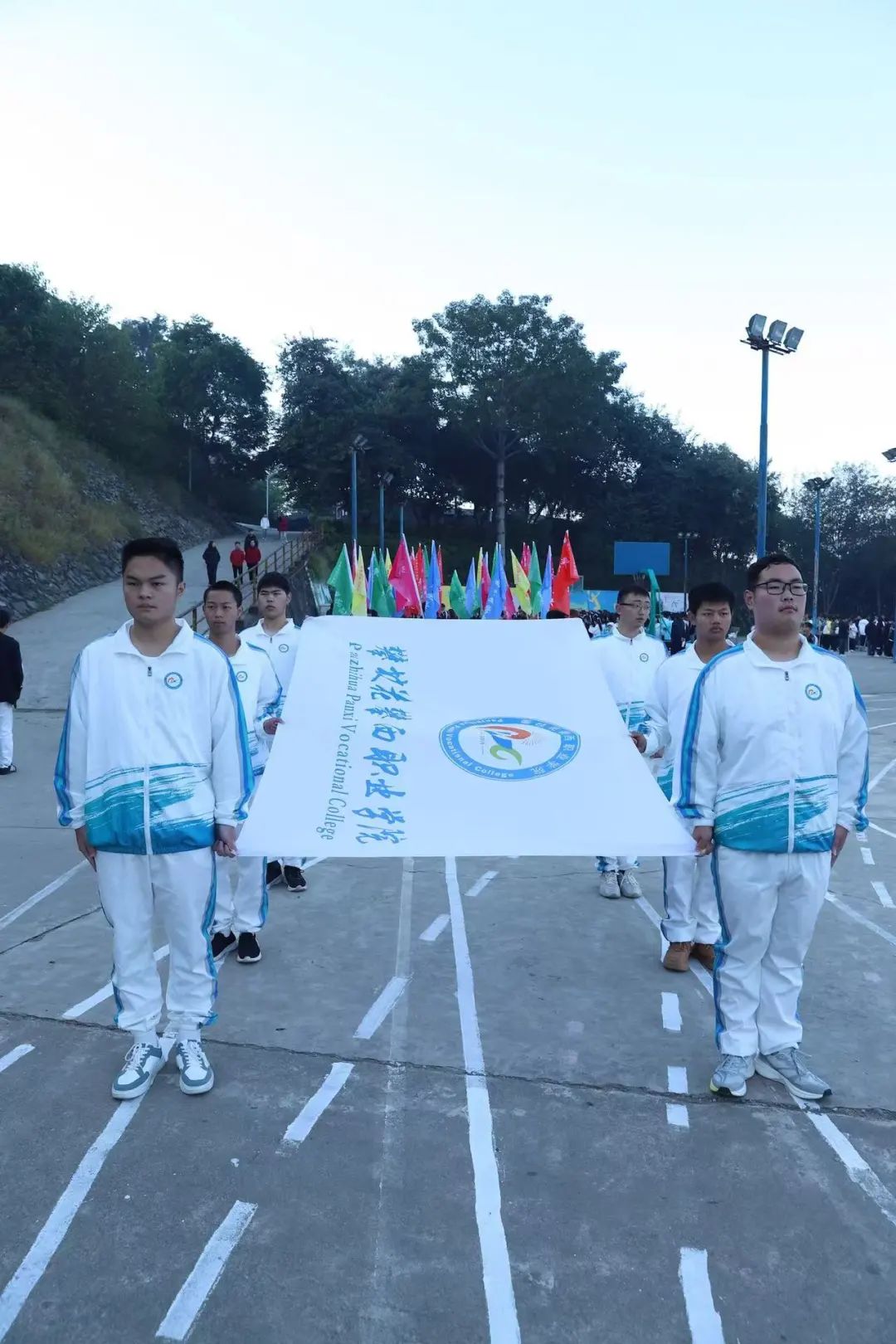晨光倾洒,运动会前奏华章初绽。我院方队如繁星列队,运动员们步伐矫健,身姿挺拔,似携风之鹏,目光坚定,自信与活力在每一步间喷薄。国歌奏响,仿若洪钟醒世。书记致辞,恰如瑞雨泽心。宣誓铿然,正启赛事新芒,共绘体育盛景。