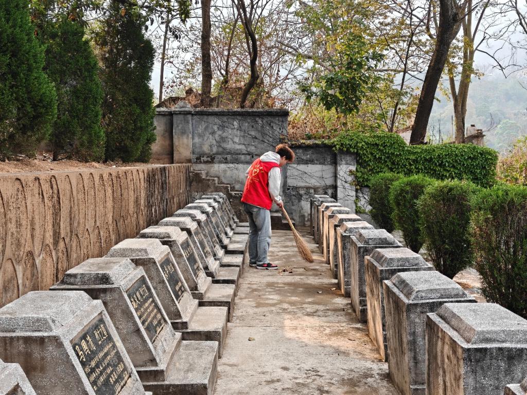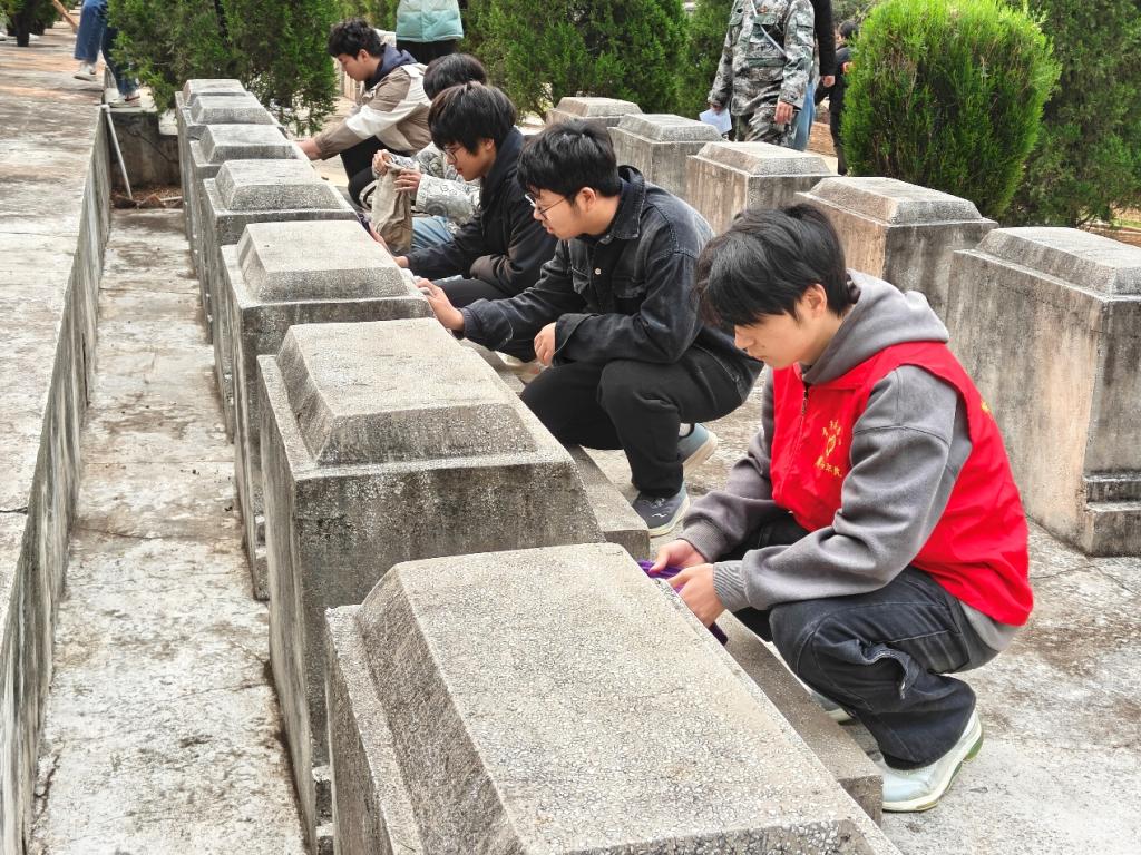 同学们对烈士墓碑进行擦拭、对园区落叶进行清扫,用行动表达对先烈的崇敬和爱戴。同学们注视着墓碑上镌刻的一个又一个英雄的名字,深深感受到正是先辈们的无私奉献与牺牲,才换来了今天的和平、安宁、幸福。