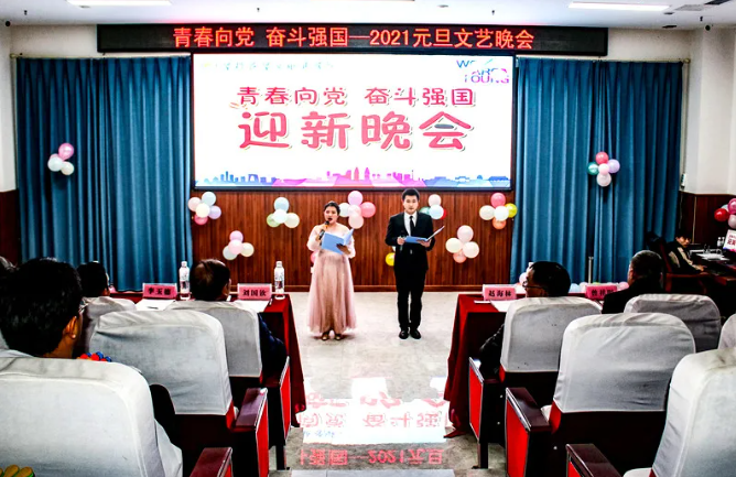 2021年12月30日晚,球探体育平台中国登陆入口2022年“青春向党 奋斗强国”迎新晚会在二实训楼阶梯教室精彩上…