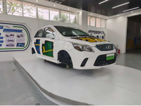 汽车产业学院实训室占地650平方米,配备有纯电动汽车一站式教学平台,配备了整车教学台架、新能源汽车网络教学台架及新能源汽车灯光电器教学台架。装配有龙门两柱举升机、轮胎拆装机、动平衡机、螺杆空压机、油水分离器等。可供学生学习汽车售后服务一系列车辆教学,保证了“教、学、做”一体化教学模式的有效实施。