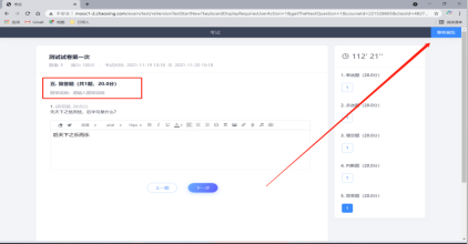 ⑨考试结束可以检查整个试卷的答题情况---检查结束点击【交卷】。