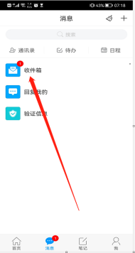 ⑤点击【收件箱】,点击【考试通知】(若无红点提示,不影响考试,请按照下列提示选择);