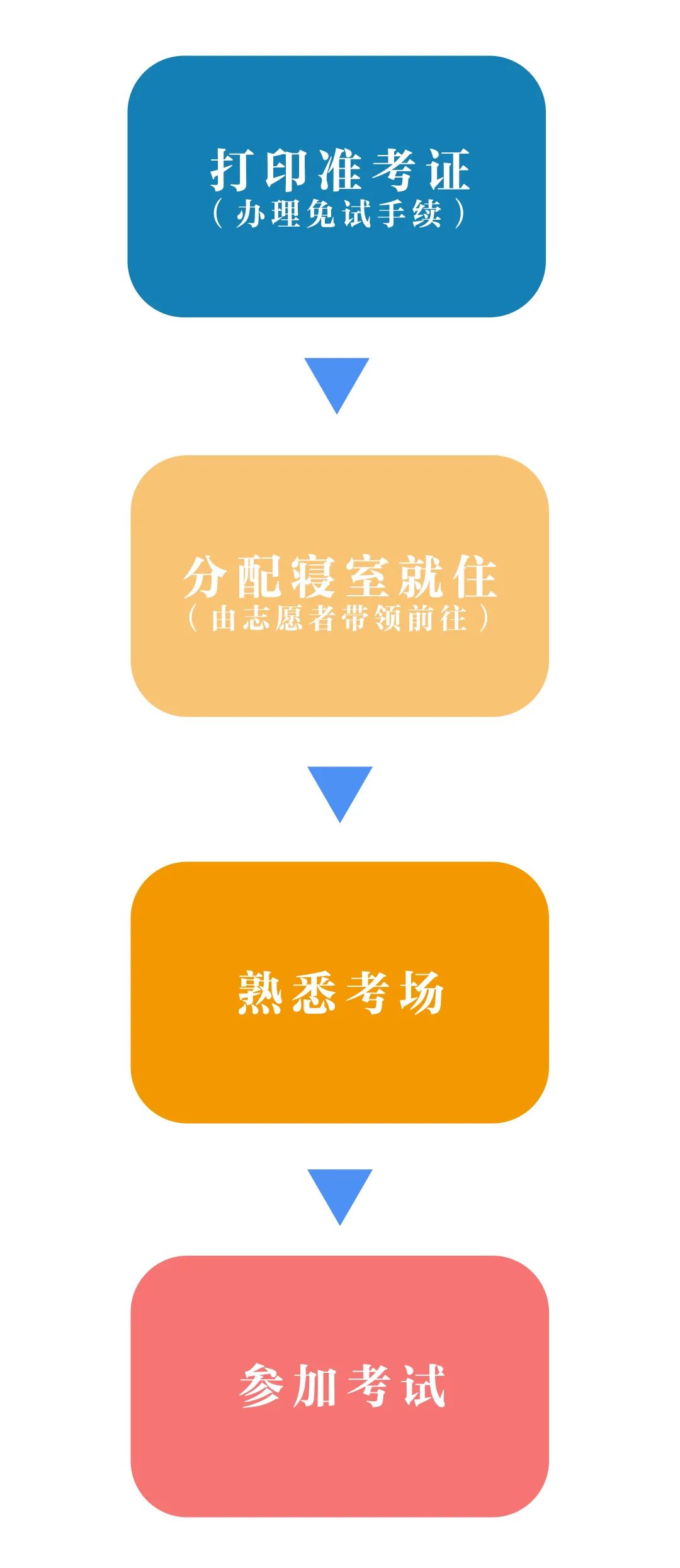 学校为每位到校考生准备住宿,在打印准考证后到指导老师处安排寝室就住。