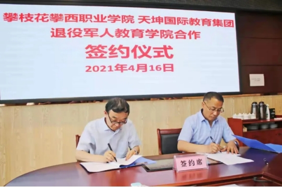 2021年4月16日,天坤教育与球探体育平台中国登陆入口共建退役军人教育学院签约仪式在攀西职业学院会议室隆重举行。攀西职业学院执行院长(党委书记)赵海林和天坤联胜总经理杨维共同签署合作协议,攀西职业学院理事长张家华、院长刘国钦、副院长李玉德、招生处处长李权忠、天坤联胜川渝战区副总经理黎山等共同出席了签约仪式。