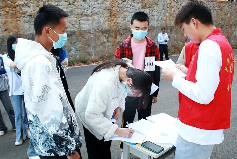 从早上7点开始,来自全省各地的考生陆续进入校园。8点半,考生按序排队,在学生志愿者及工作人员的引导下完成安检、签到、资格审查、领取准考证等流程后进入相应考场。期间,学院领导全程参与,及时了解相关信息,并帮助解决工作中遇到的问题。学生志愿者积极主动,帮助老师核实考生信息、物品存放、参与考场引导、考试问题解答等工作,为考生提供温馨、热情、周到的服务,营造了良好的考试环境。